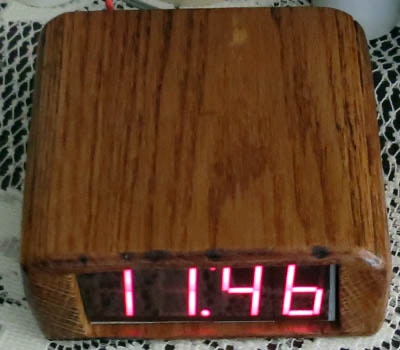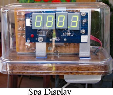 4 digital LED displays are driven using using a Picaxe and a RF receiver to show remote sensor and time data.