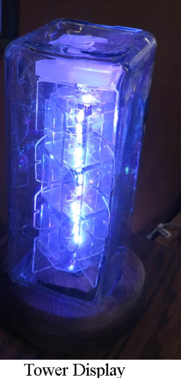 A decorative display with flashing rgb lights