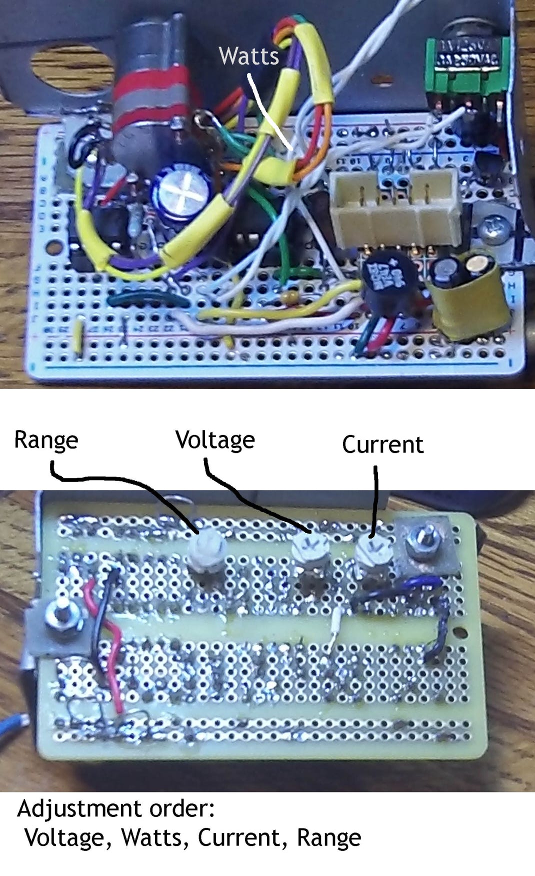 All the remaining parts are soldered onto a board. This, and three switches, are mounted onto the cover plate.