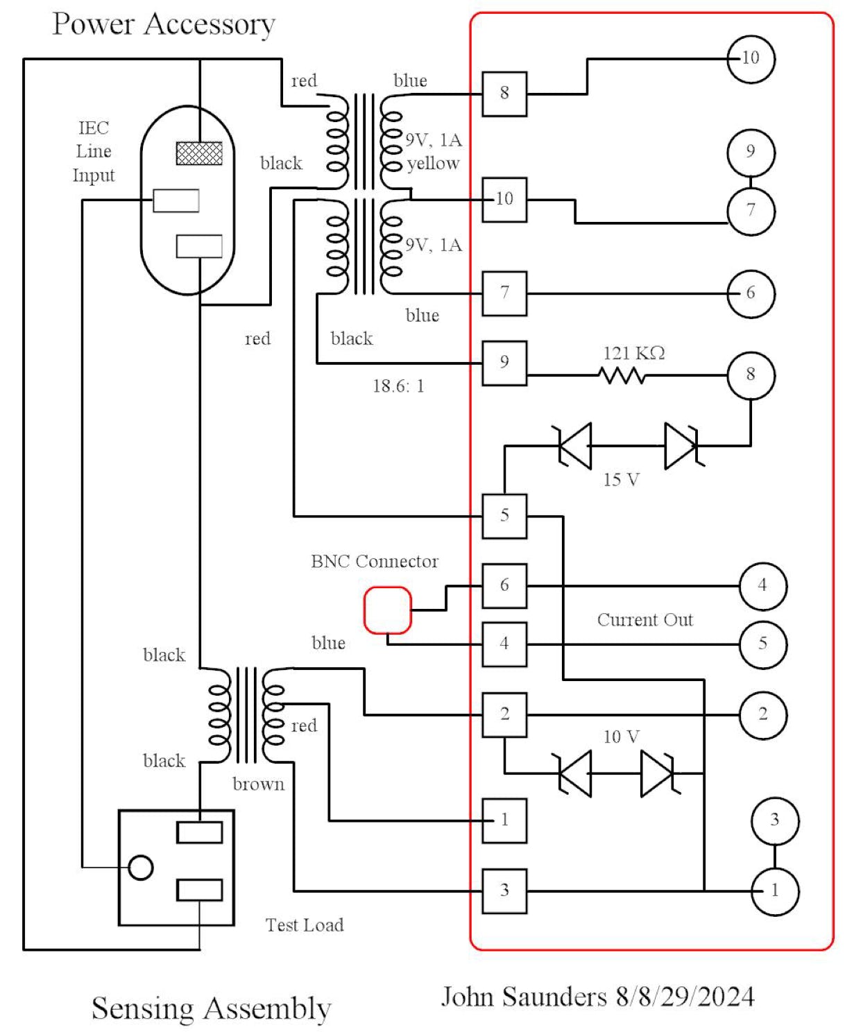 The current transformer has a 295 ohm secondary and a 46:1 ratio. Its output is 22 MA for the high range 1 amp full-scale input.