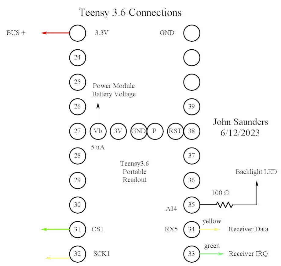 The Teensy and the receiver are always run from the battery and controlled by the Picaxe. The Teensy uses its own regulator to provide 3.3V for itself, the screen, and the BME680.