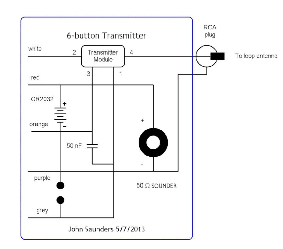 It consumes no battery current until a button is pressed, then it transmits the selected code and shuts down. The battery has not needed ever to be changed.
