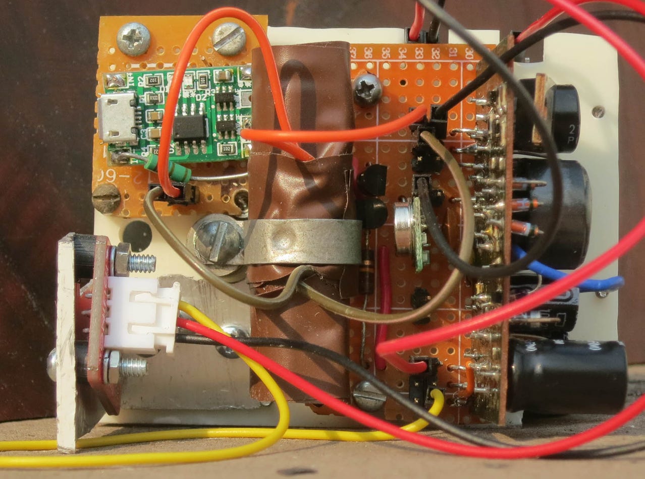 It also has a Li Ion battery, a DC-DC converter, and a battery charger.