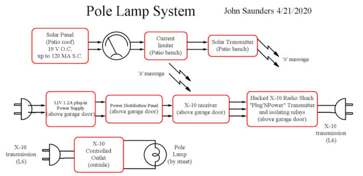 The Pole Lamp Control is actually a system of multiple devices in three locations: