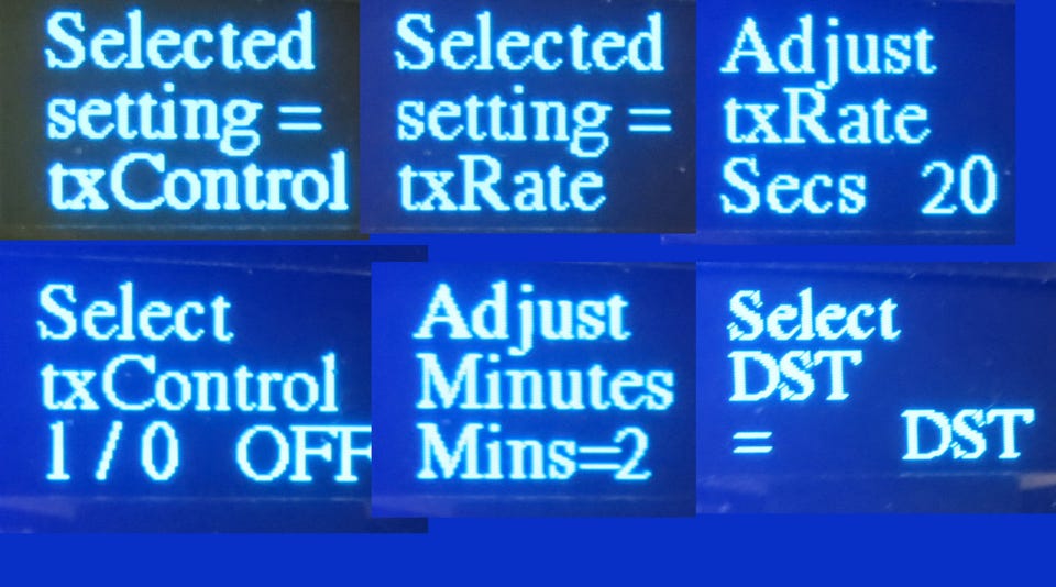 In page 4b UP increments the seconds between transmissions, DOWN decrements it.