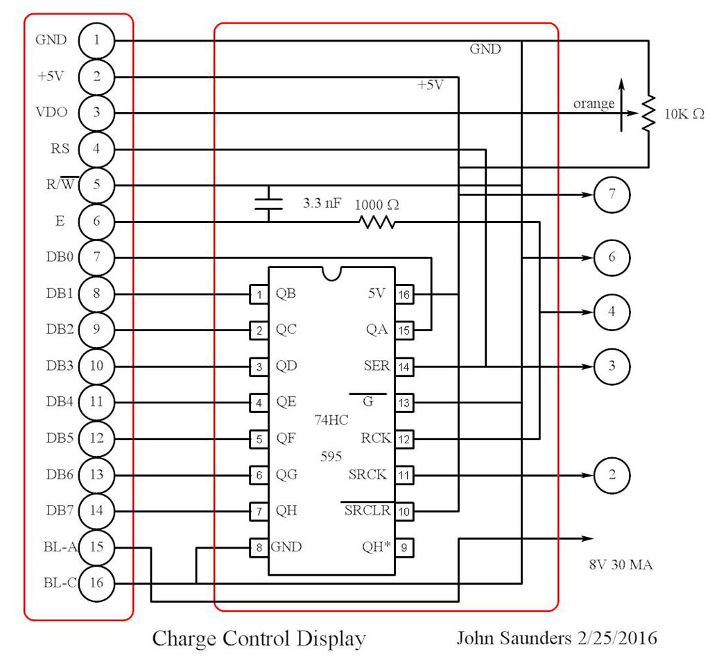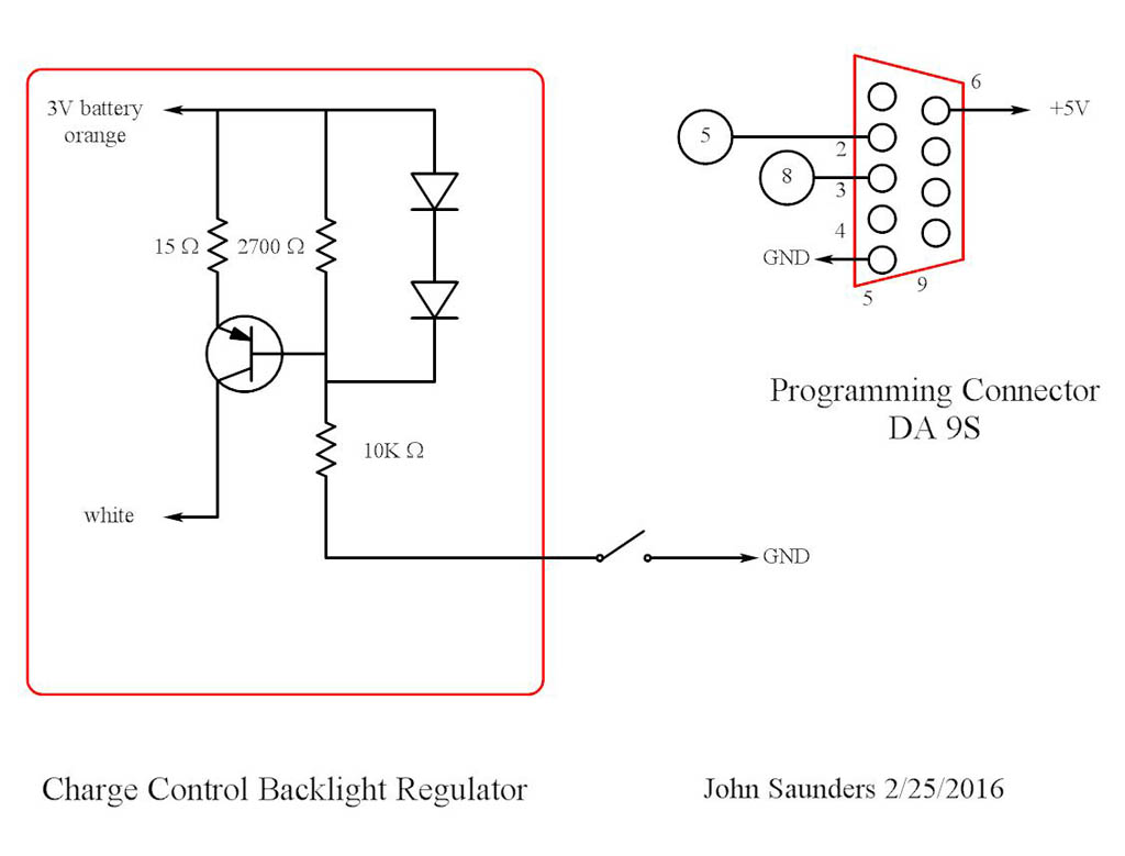 This group of citcuits are attached to the sheet metal and share an 8-pin header connector to the main board. The 2-row by 16 character LCD display module has the common 14-pin connector. This display is connected to a serial-to-parallel shift register in order to reduce the number of wires and for neater software. I usually use the 74H164 shift register fr this, but this time I used the more complex 74H595 because its pinout matches that of the display, so no wiring is needed. (The board is stripline). The shift buffer clock and the display enable can be connected together since they are active on opposite edges of the pulse. This display has LED backlighting, which was a problem since it needed 8 volts, and the battery is 6 volts. I had to add a 2-cell alkaline auxiliary battery and a current-limter circuit with low voltage drop. This is directly connected to the 3-volt battery by a wire. It is controlled by a push-on - push-off button. The range switch also presented a problem since the clockwise position has no contact. A one-megohm resistor to +5V is connected to the switch wiper on the main board to get around this. |