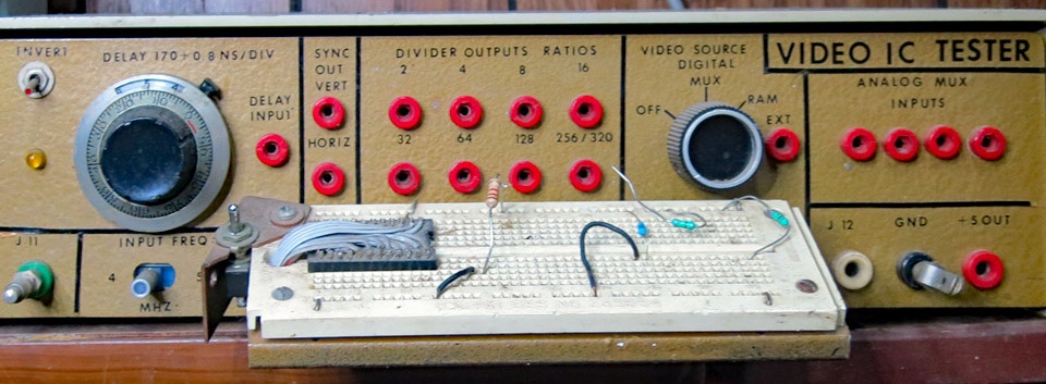 This was made as the input device for a system with a big color CRT. This was a TV tube with new drivers for oscilloscope function. Of course this was not very fast., This device is long gone but this part has survived and is in my workbench, partly because of the attached breadboard.