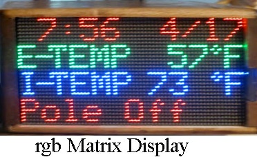A 64x32 pixel 3-color LED matrix using an Arduino Mega to drive the display and a Picaxe to receive remote sensor and time data