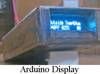 4 digital LED displays are driven using using a Picaxe and a RF receiver to show remote sensor and time data.