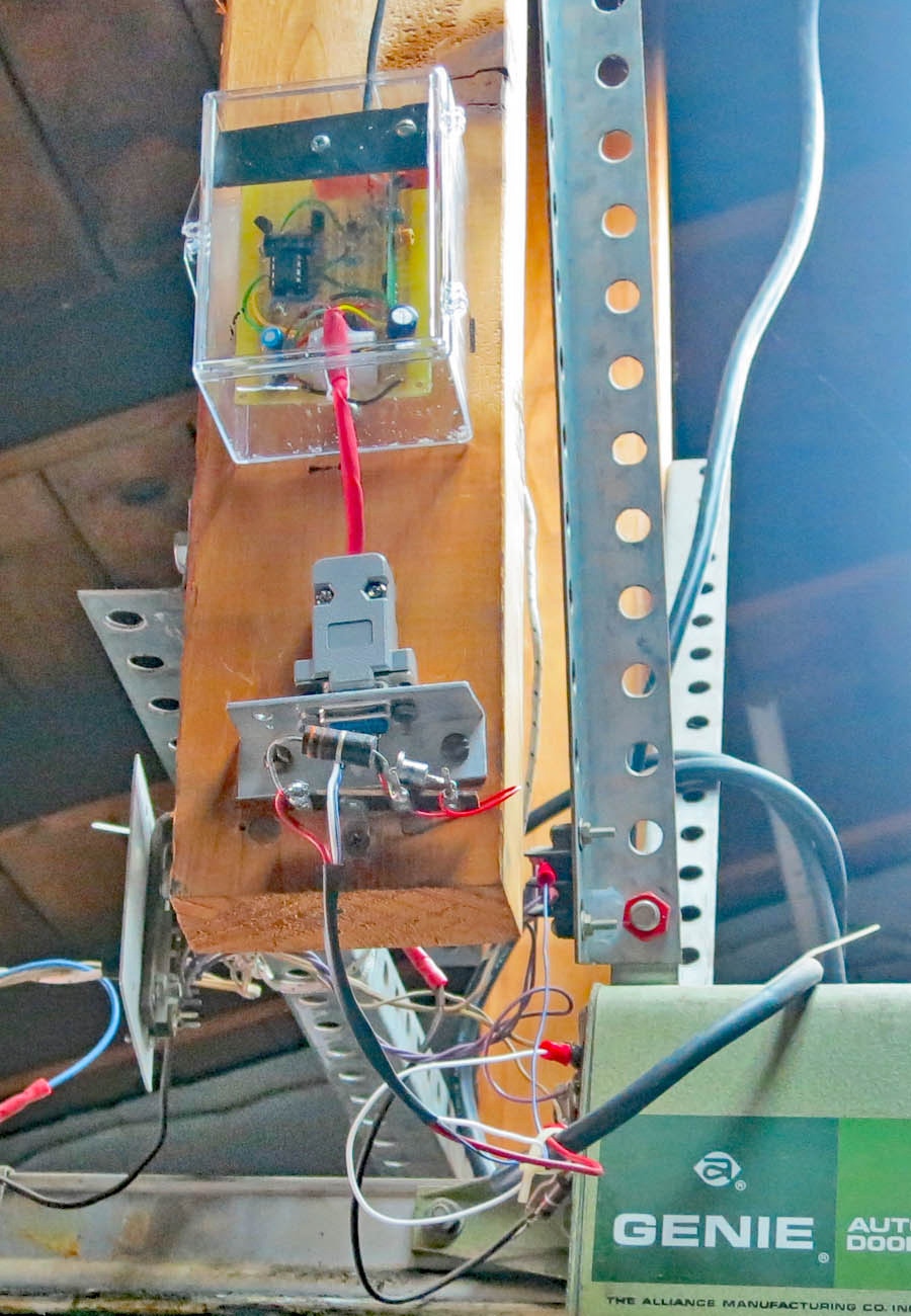 This is therefore two devices, a transmitter and a receiver. This is a photo of the receiver which was made to be compatible with the power provided by the door opener and its control wire.