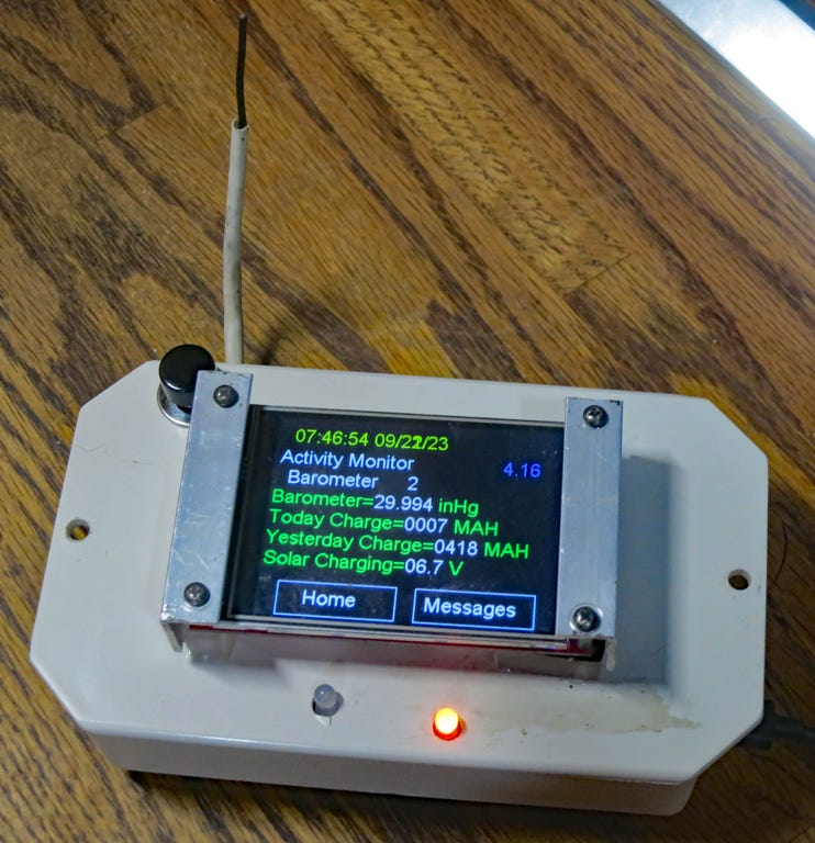 It has two micro-controllers. A Picaxe is always on, but consumes only 26 uA in Standby, Its function is to control orderly power up and down of the second micro-controller, a Teensy 3.6 running at a reduced speed of 48 MHz to conserve power. The Teensy performs all functions except measuring the batter voltage.