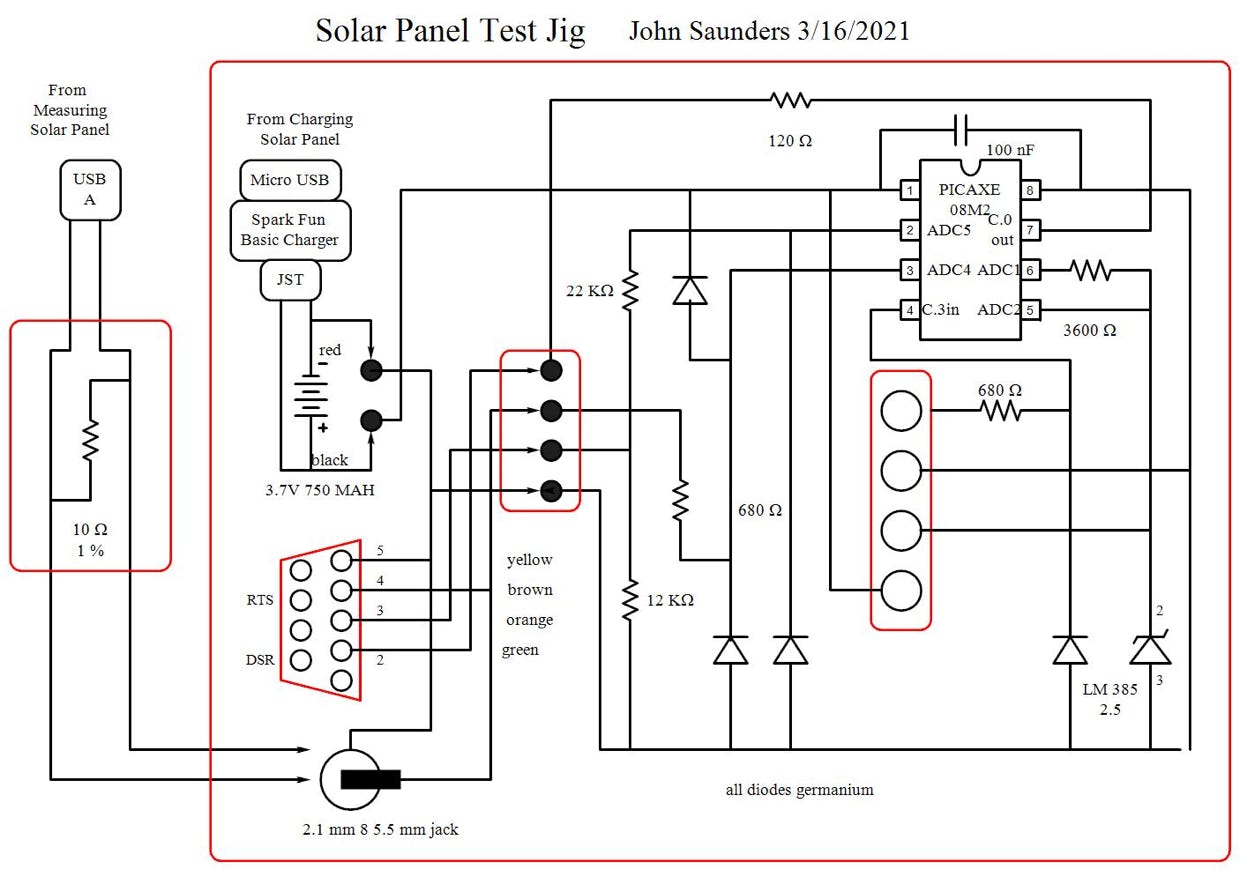 I made this device to measure the total daily charge of a portable solar panel with a 5V output via a USB-A socket. Each of several was tested for weeks. Another solar panel keeps the included battery charged.