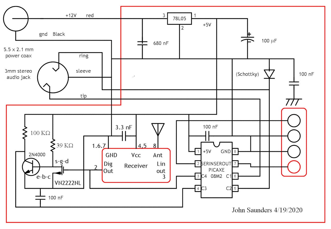 The 12V power supply powers four devices: